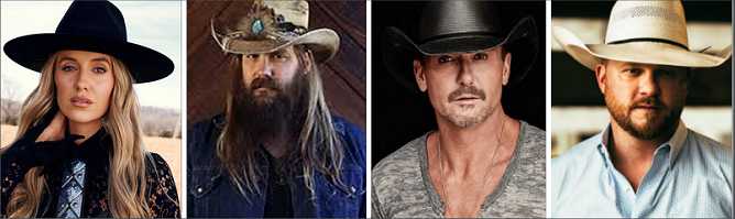 Lainey Wilson, Chris Stapleton, Tim McGraw and Cody Johnson.