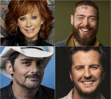 Reba McEntire, Post Malone, Brad Paisley and