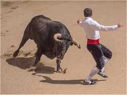 Of particular interest are photos and video clips depicting victory ... for the bull! Today, dramatic gorings, tramplings have become the stuff of Internet legend, as images of victims flipped head-over-heels have become the equivalent of an urban car wreck. Viewers can't look away.